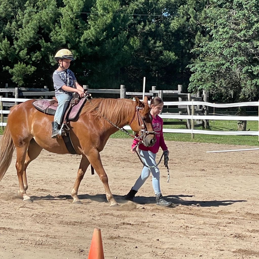 River, owned by Colline Cheltenham of Lansing, has become the best trail riding/ kids horse on the property. She absolutley loves her "job"!